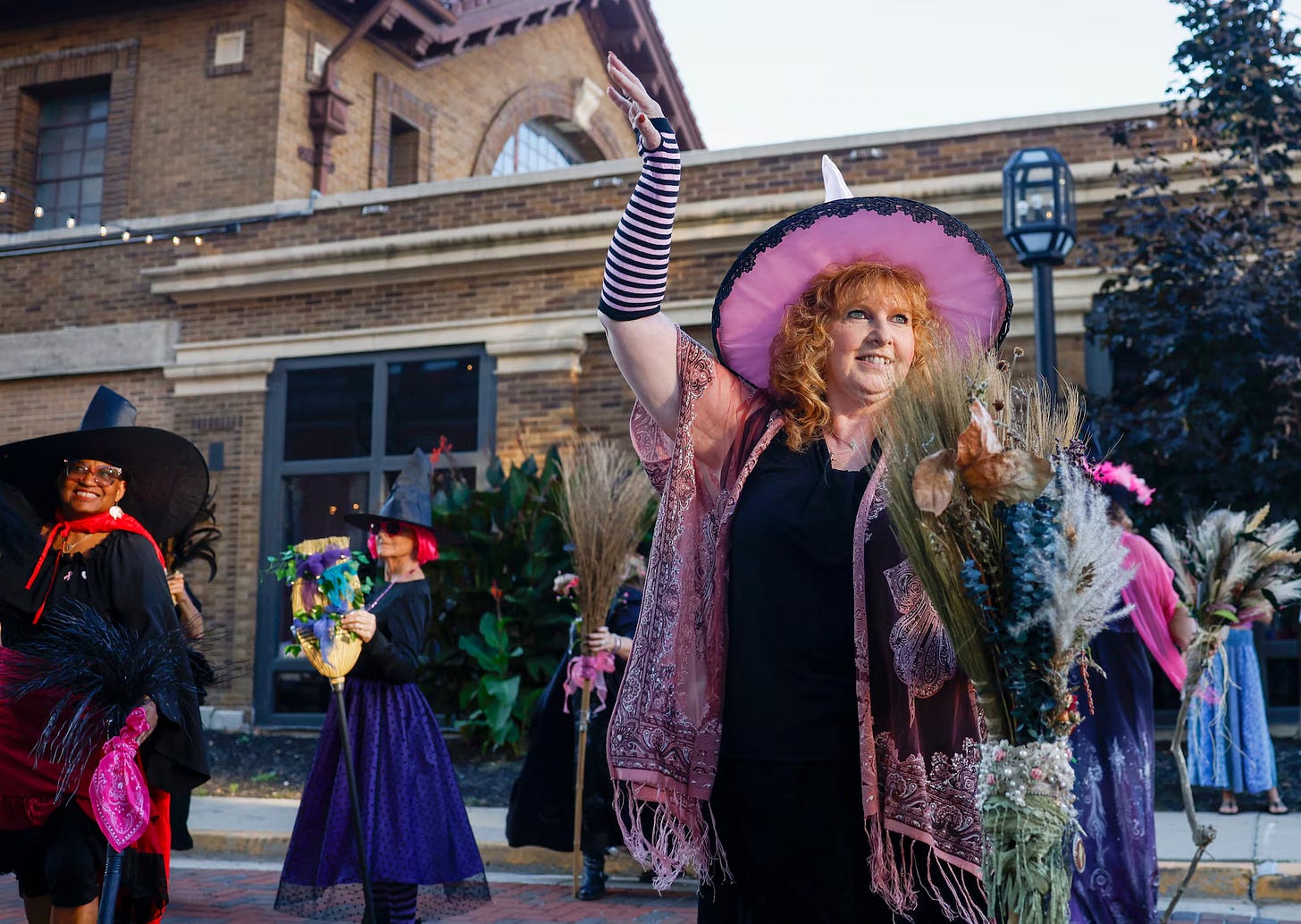 In case you are still deciding if witches are good or evil, let me introduce you to the good witches of Springfield. Jodi Ray-Patton (center of picture), dances with the Rose City Witches outside Myers Market on Friday, October 3, 2025, in Springfield. The performance was part of a Think Pink Foundation event to raise awareness about breast cancer.