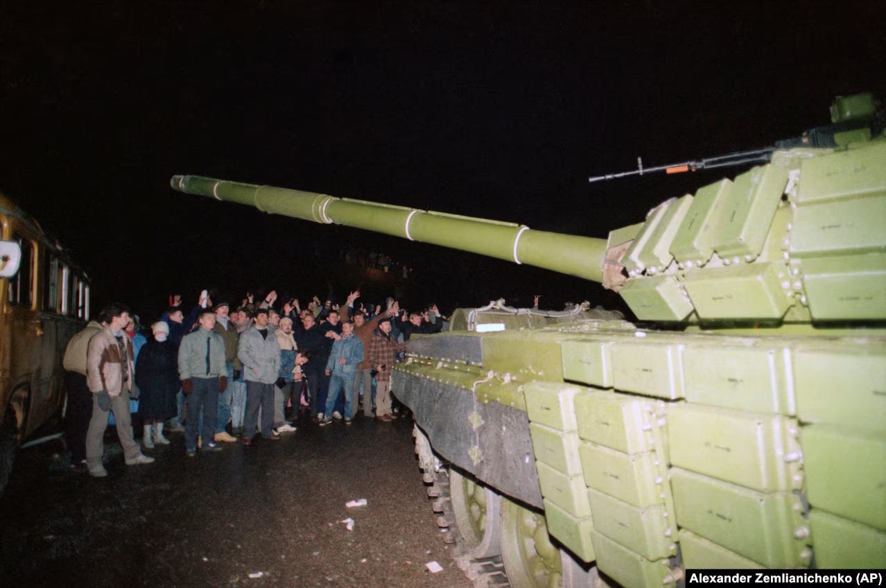 After gaining independence on March 11, 1990, “Soviet troops garrisoned in Vilnius were deployed on January 11, 1991. Crack KGB units had been flown in days earlier. Their task: To take control of key sites in the capital — an effort that climaxed with the attack on the TV broadcast tower and sole TV station on January 13…. Fourteen civilians were killed by Soviet forces during those fateful days in January 1991, Lithuanian officials would later say, all but one of them during the storming of the state television station and TV tower. More than 700 were wounded.”