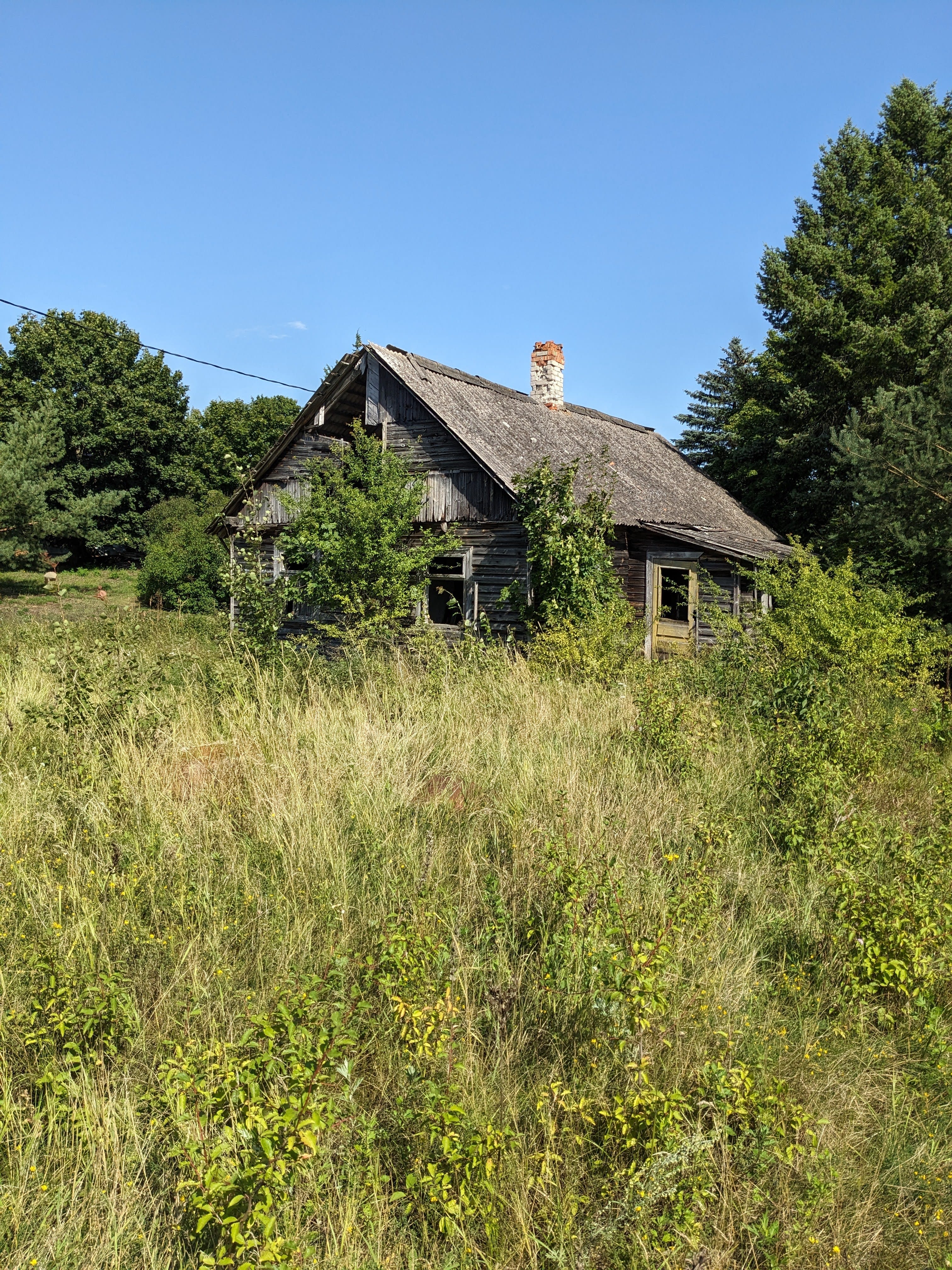 My family and I drove to Šilelis, my fictional flax farm in Ona’s Tears Part Two. It was as I pictured. There was a cemetery near the woods an open field and houses with river views. Some were new builds with long private driveways and many were renovated original homes as found in feudal estates. I spotted a dirt road that led to the river and discovered a troba in ruin.