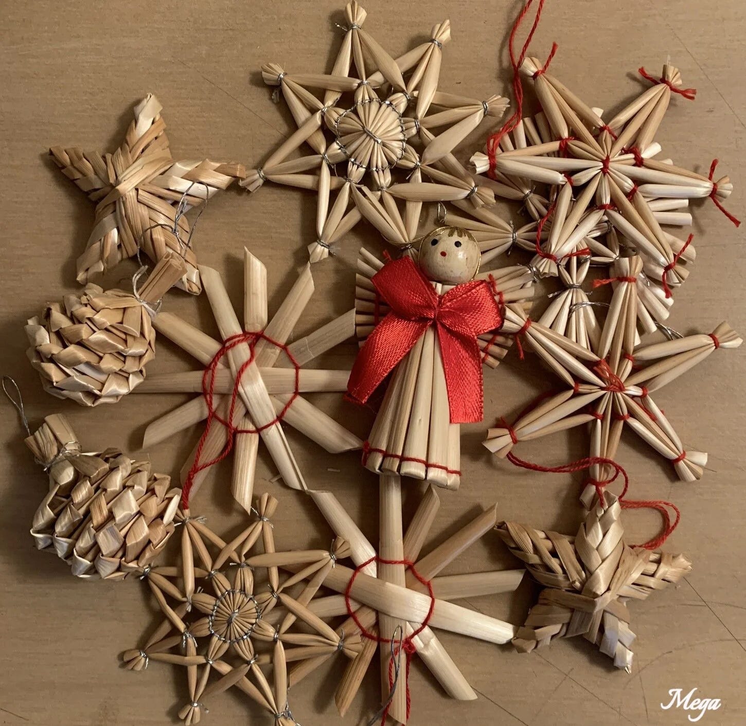 Lithuanian Handmade straw ornaments are particularly traditional. They can decorate Christmas trees or be used as decoration for other parts of the house. Sometimes these are made with plastic drinking straws, but the more traditional material is the yellow straw usually used for farm animals.
