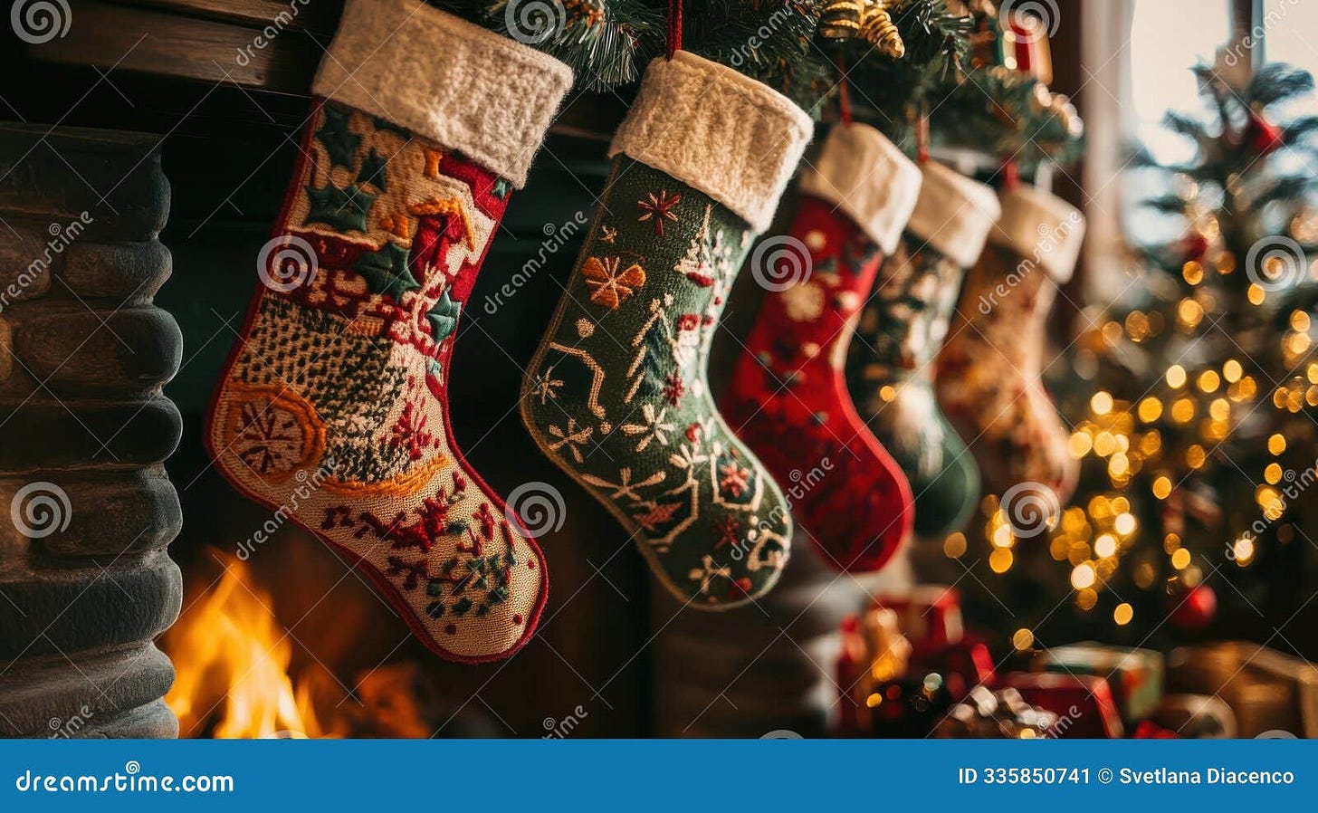 Ornaments and Stockings abound